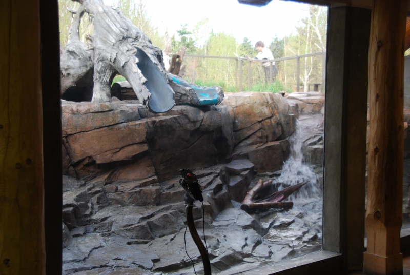 In the spring of 2012 we refurbished the acrylic viewing panels of the Otter Tank at the Calgary Zoo, sanding, polishing & buffing both inside and outside viewing surfaces to remove scuffs and scratches. Each of the 4 panels are roughly 10′ wide x 8′ high. Below are before and after pictures: